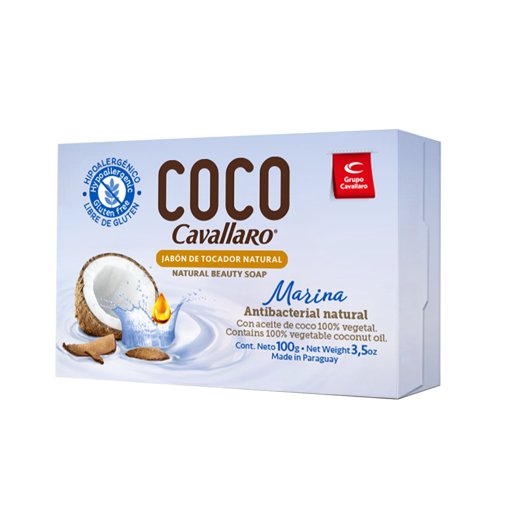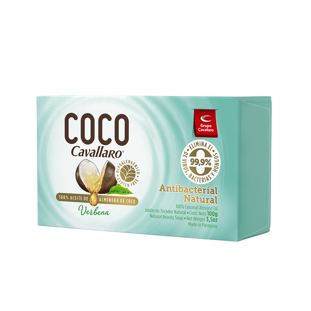 El jabón de Tocador Coco Cavallaro está hecho 100% de aceite de almendra de coco. Brinda una protección Antibacterial Natural, es antiséptico, hipoalergénico y libre de gluten dándole a la piel una limpieza profunda y el máximo cuidado sin resecarla, gracias al agregado de un aditivo humectante natural a su formulación, que disminuye la astringencia característica de este jabón.